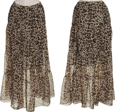 ROMEO & JULIET COUTURE Chiffon Leopard Print Tiered Maxi Skirt [RJ25861], Large Best
